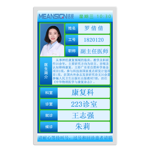 用途:醫(yī)生診室門口屏/二級(jí)分診屏