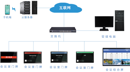 會議室預定系統是為了解決企業、政府單位等客戶的會議室的管理問題,當會議室數量較多的時候,常常出現會議室管理混亂的現象出現,會議室的使用情況無法預知。用戶通過會議預定系統可以查詢了解會議室的使用情況,并能夠預約處于空閑狀態的會議室,會議室預約成功后,可以以郵件或短信等方式通知參會人員。當會議即將開始前,將會議的相關信息,如會議主題、時間等信息顯示在會議室門口的會議門牌上。參會人員到場后可進行掃碼簽到、短信簽到或人臉識別簽到,簽到情況數據返回后臺進行統計,如聯動了門禁系統,則簽到成功后可觸發門禁開門或直接輸入密碼門禁開門。